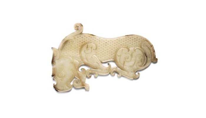 今天(4/3)下午,蘇富比香港的拍賣中一件東周 黃玉瑞獸玉佩飾(22公分)以